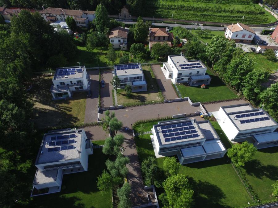 Sei ville unifamiliari realizzate con i criteri della bioedilizia e della sostenibilità, Quattro sono in legno e due in muratura. Si utilizzano solo materiali reciclabili e riproducibili.