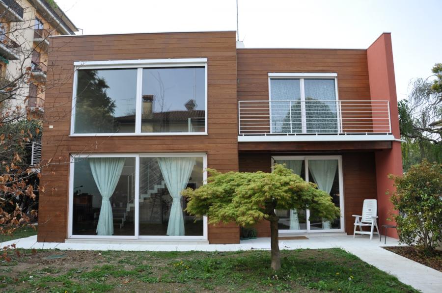 La richiesta di prevede un piccolo ampliamento è l'occasione per ripensare completamente il linguaggio architettonico di un fabbricato degli anni '60.... L'ampliamento è interamente realizzato con struttura lignea, e il rivestimento di finitura della nuova facciata non rinnega quanto gli sta dietro. Sul nuovo soggiorno a doppia altezza si affacciano i locali che prima davano sull'esterno. La luce, anche per questi spazi, è garantita dalle ampie vetrate realizzate nella nuova facciata